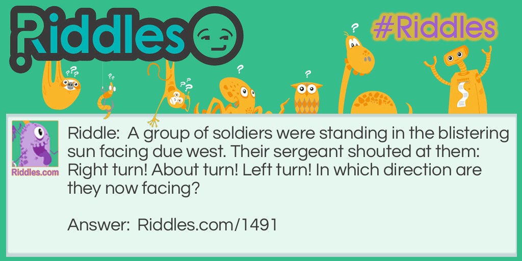 Riddle: A group of soldiers were standing in the blistering sun facing due west. Their sergeant shouted at them: Right turn! About turn! Left turn! In which direction are they now facing?