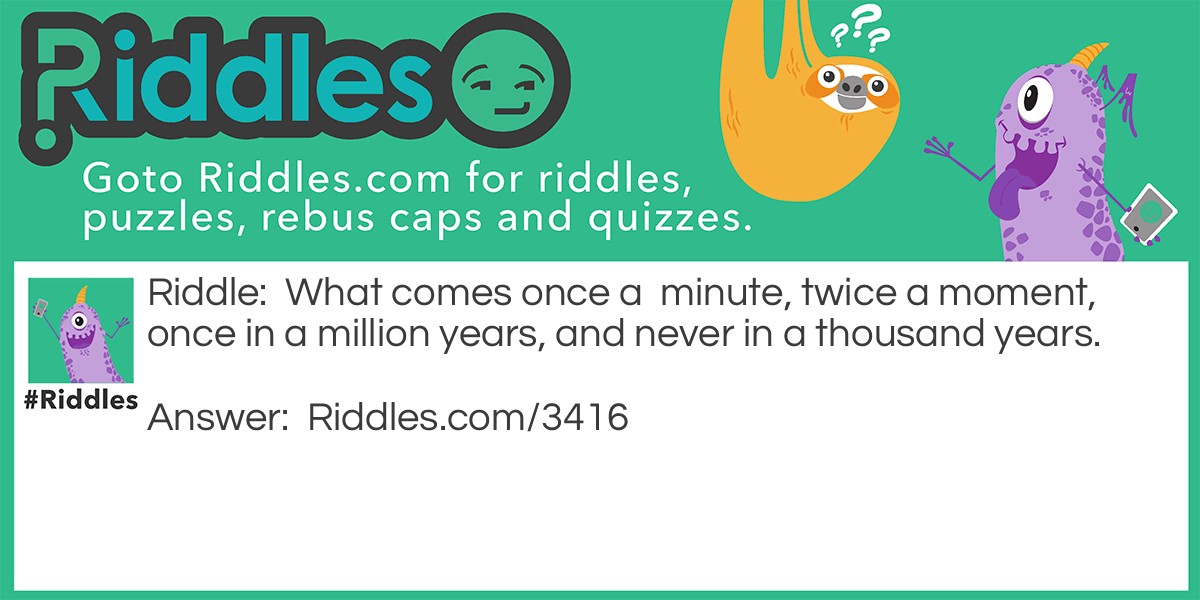 Riddle: What comes once a minute, twice a moment, once in a million years, and never in a thousand years?