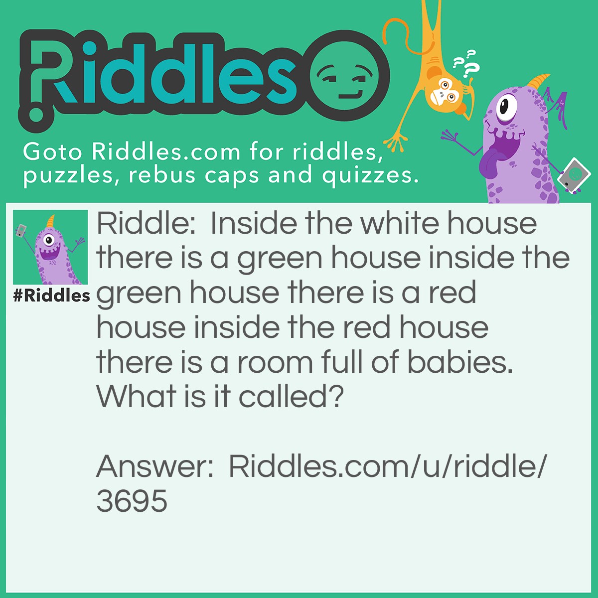 Riddle: Inside the white house there is a green house inside the green house there is a red house inside the red house there is a room full of babies. What is it called?