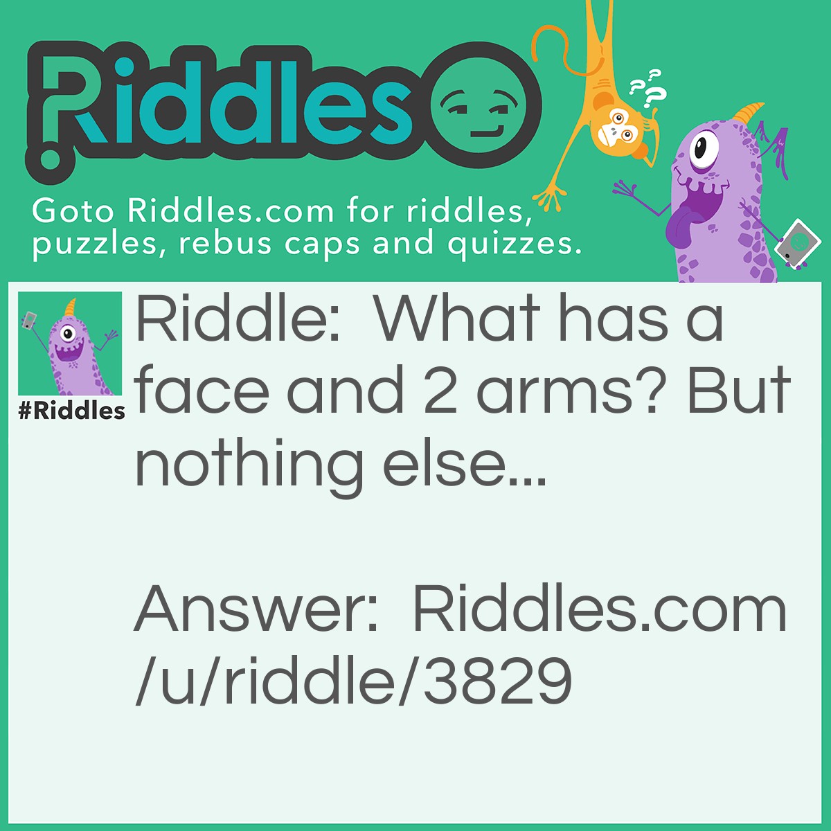 What has a face and 2 arms? But nothing else...