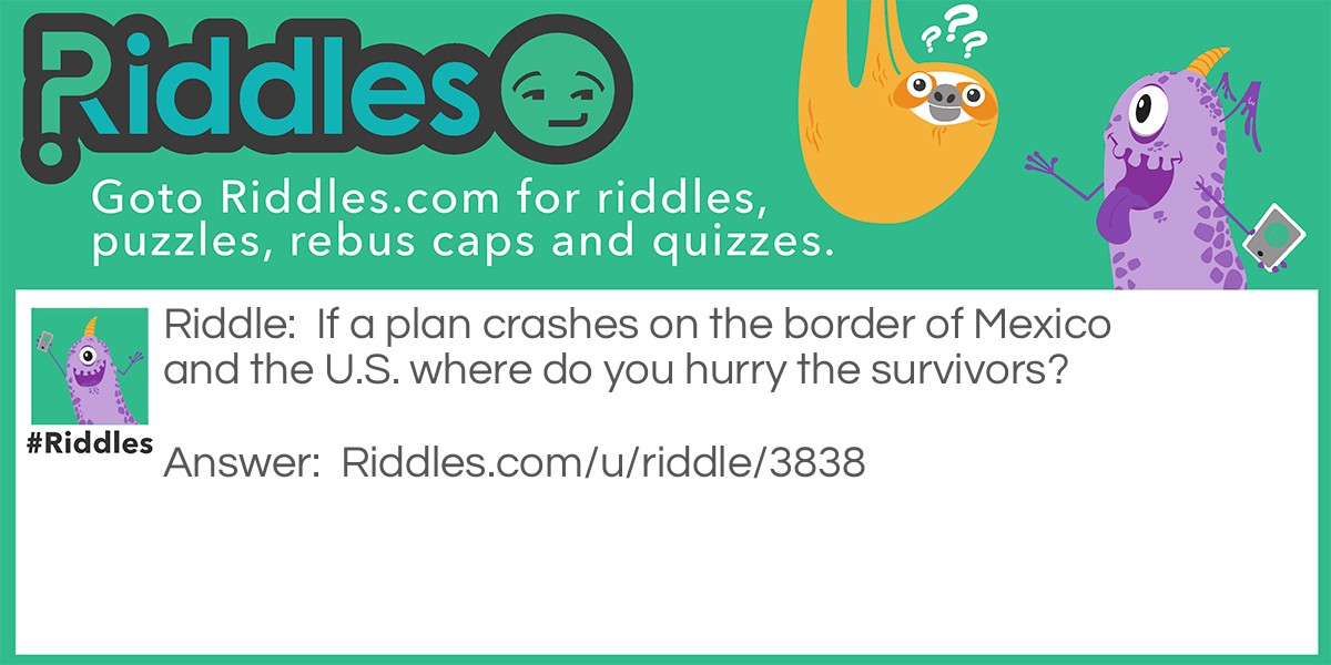 Riddle: If a plan crashes on the border of Mexico and the U.S. where do you hurry the survivors?