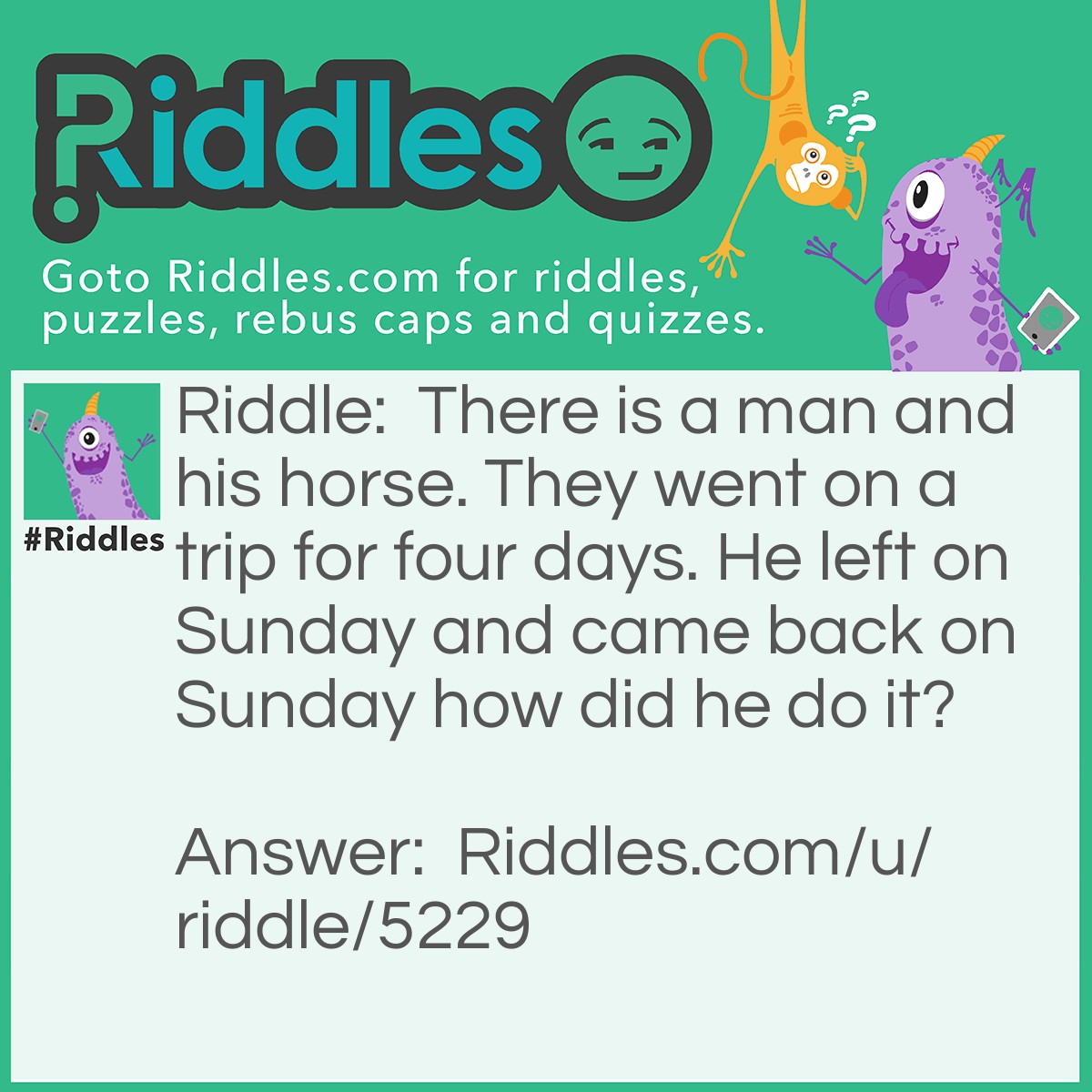 Riddle: There is a man and his horse. They went on a trip for four days. He left on Sunday and came back on Sunday how did he do it?