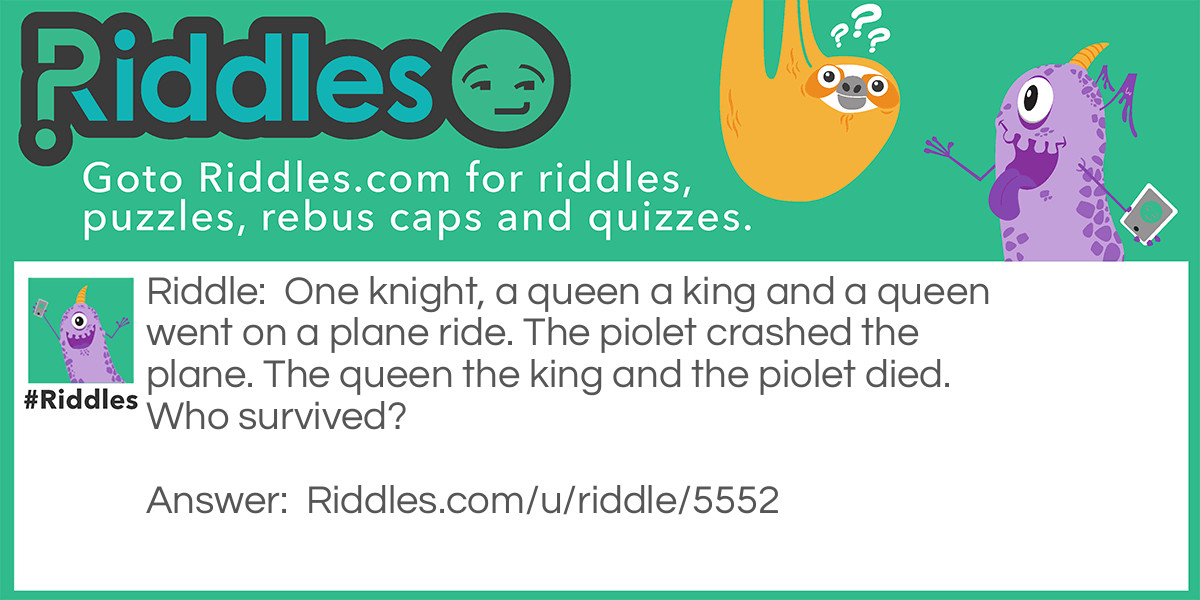 Riddle: One knight, a queen a king and a queen went on a plane ride. The piolet crashed the plane. The queen the king and the piolet died. Who survived?
