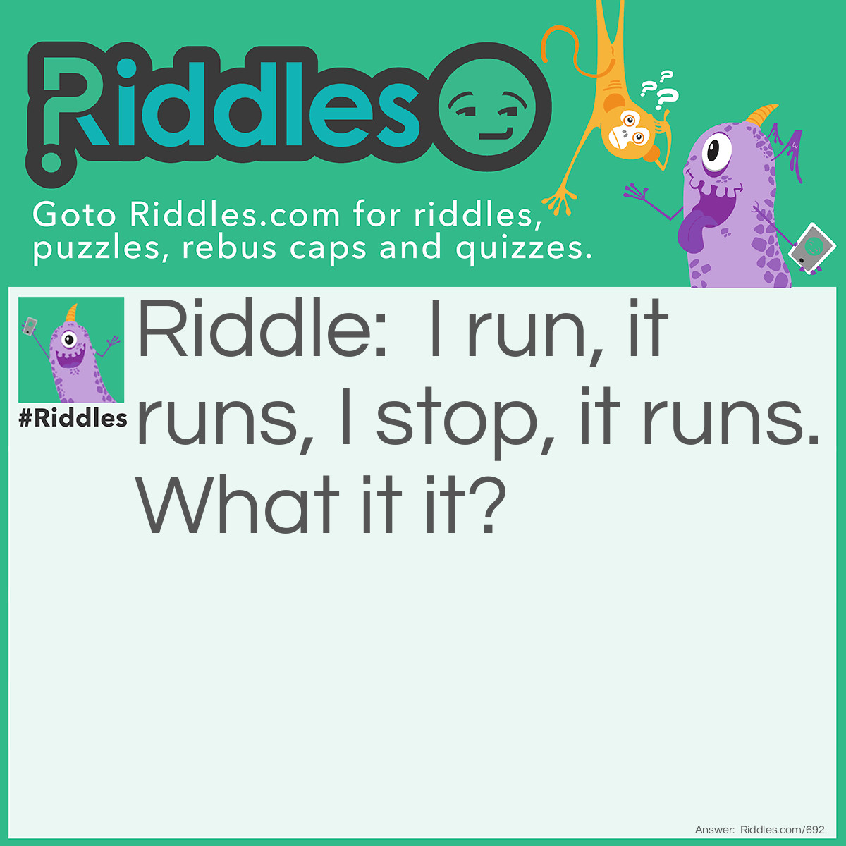 To link to the page use the following code: <a href="https://www.riddles.com/692" >I run, it runs, I stop, it runs. What it it?</a>