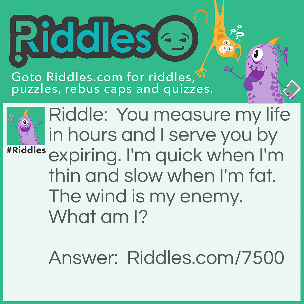 Riddle: You measure my life in hours and I serve you by expiring. I'm quick when I'm thin and slow when I'm fat. The wind is my enemy. What am I?