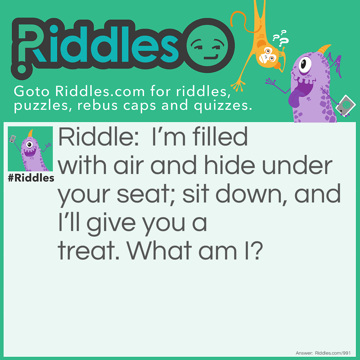 Riddle: I’m filled with air and hide under your seat; sit down, and I’ll give you a treat. What am I?