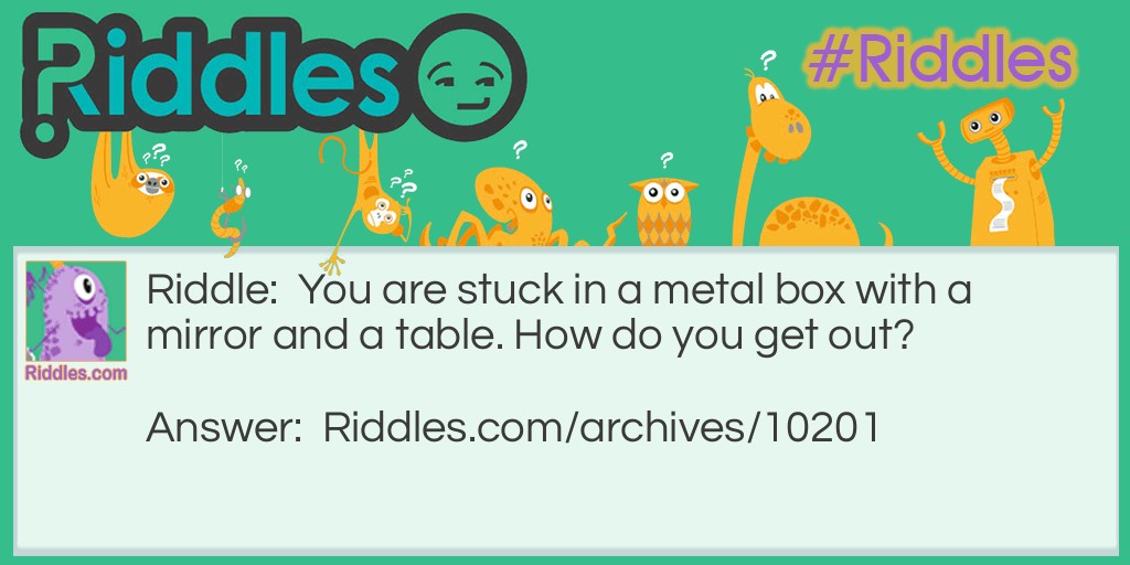 Riddle: You are stuck in a metal box with a mirror and a table. How do you get out?