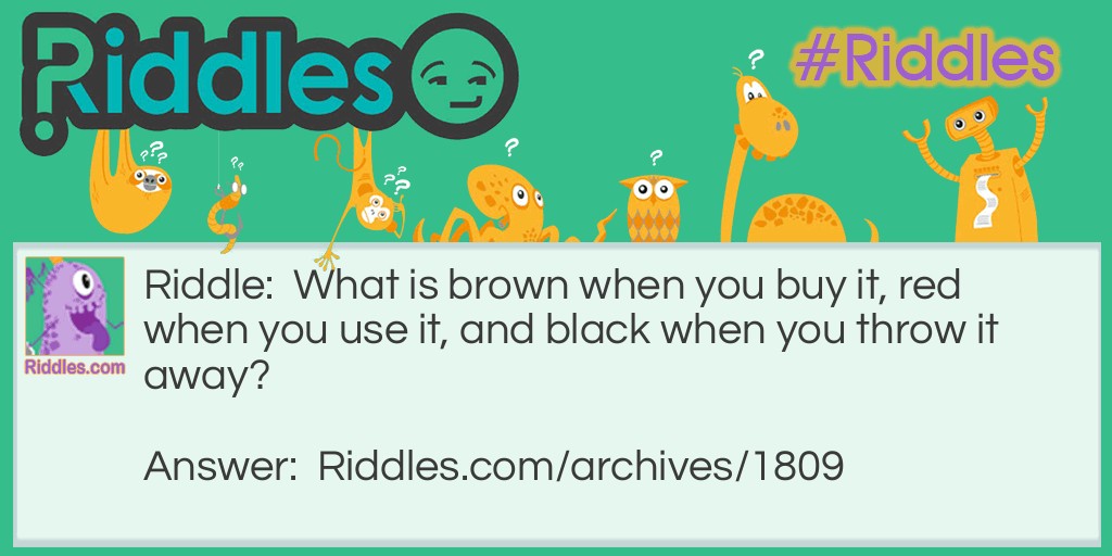 Riddle: What is brown when you buy it, red when you use it, and black when you throw it away?