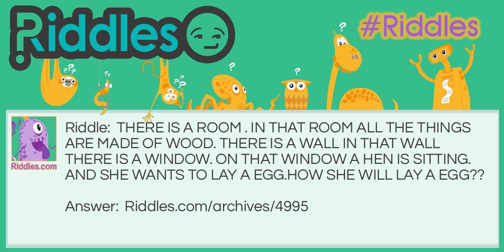 Riddle: THERE IS A ROOM . IN THAT ROOM ALL THE THINGS ARE MADE OF WOOD. THERE IS A WALL IN THAT WALL THERE IS A WINDOW. ON THAT WINDOW A HEN IS SITTING. AND SHE WANTS TO LAY A EGG.
