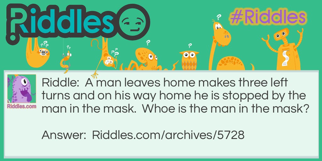 Riddle: A man leaves home makes three left turns and on his way home he is stopped by the man in the mask. Whoe is the man in the mask?