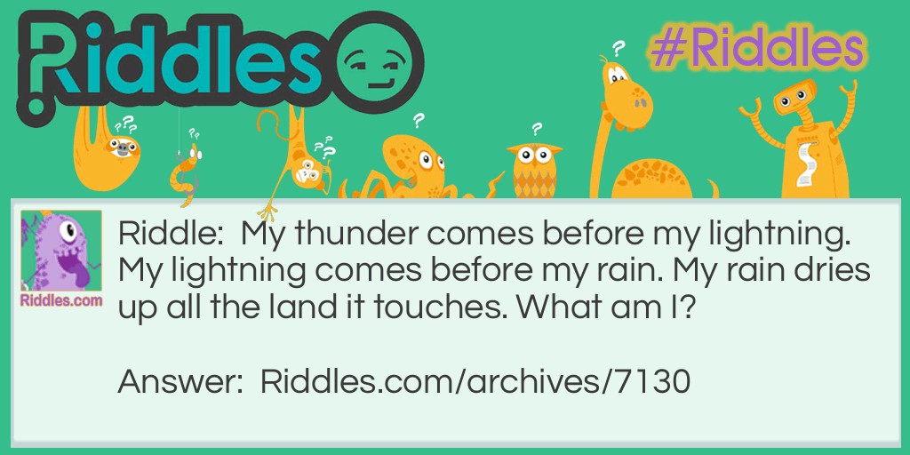 Riddle: My thunder comes before my lightning. My lightning comes before my rain. My rain dries up all the land it touches. What am I?