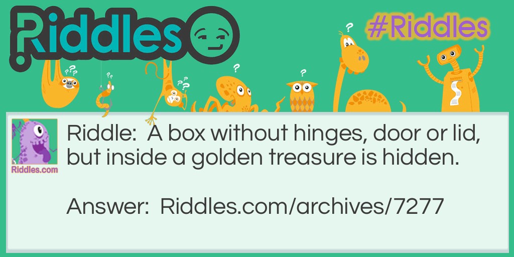 Riddle: A box without hinges, door or lid, but inside a golden treasure is hidden.