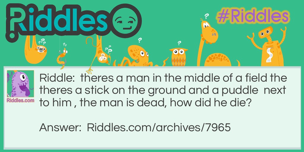 Riddle: theres a man in the middle of a field the theres a stick on the ground and a puddle next to him , the man is dead, how did he die?