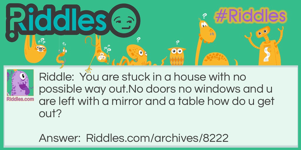 Riddle: You are stuck in a house with no possible way out.No doors no windows and u are left with a mirror and a table how do u get out?