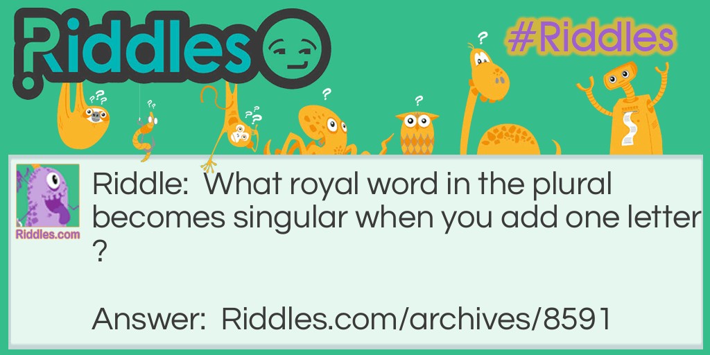 Riddle: What royal word in the plural becomes singular when you add one letter?