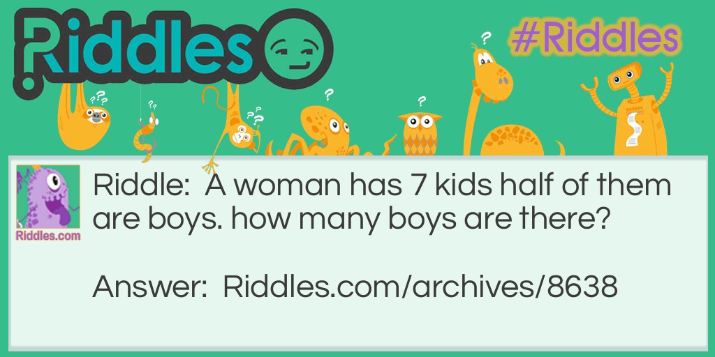 Riddle: A woman has 7 kids half of them are boys. how many boys are there?