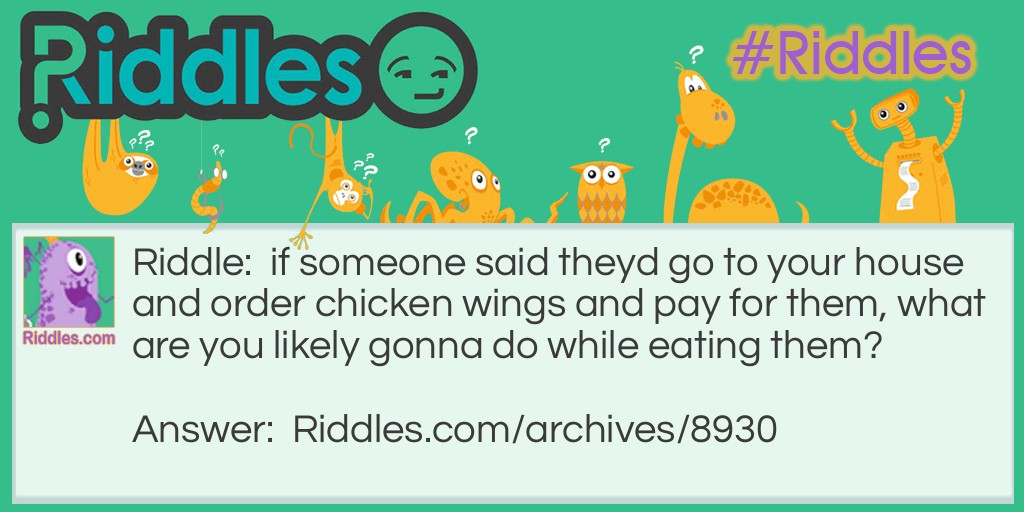 Riddle: if someone said theyd go to your house and order chicken wings and pay for them, what are you likely gonna do while eating them?
