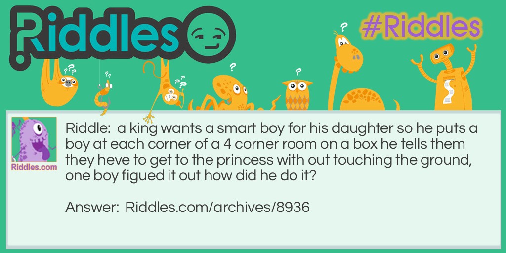 Riddle: a king wants a smart boy for his daughter so he puts a boy at each corner of a 4 corner room on a box he tells them they heve to get to the princess with out touching the ground, one boy figued it out how did he do it?