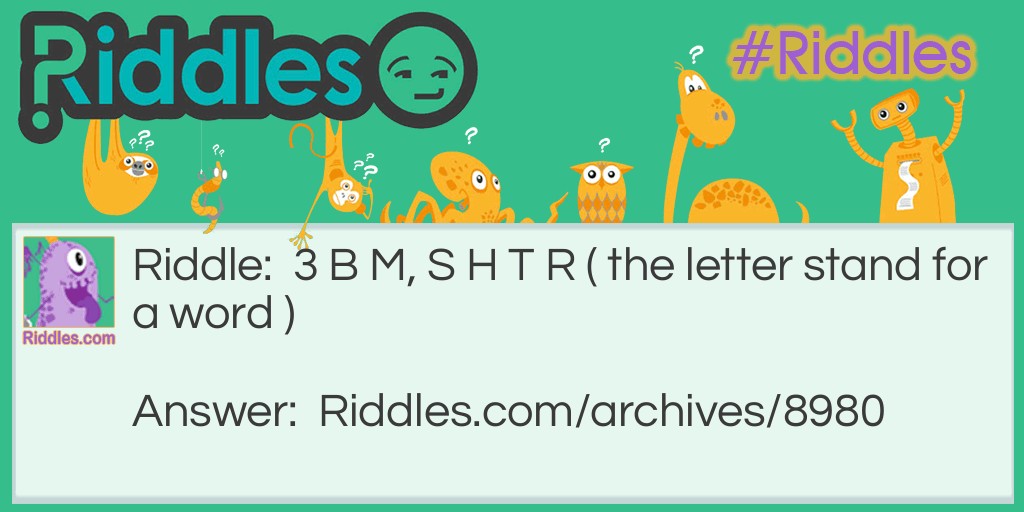 Riddle: 3 B M, S H T R ( the letter stand for a word )