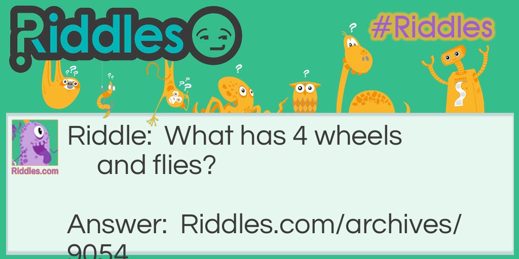 Answer: a garbage can has 4 wheels and flies from the garbage.