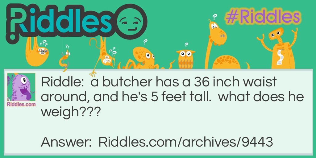 Riddle: a butcher has a 36 inch waist around, and he's 5 feet tall. what does he weigh???