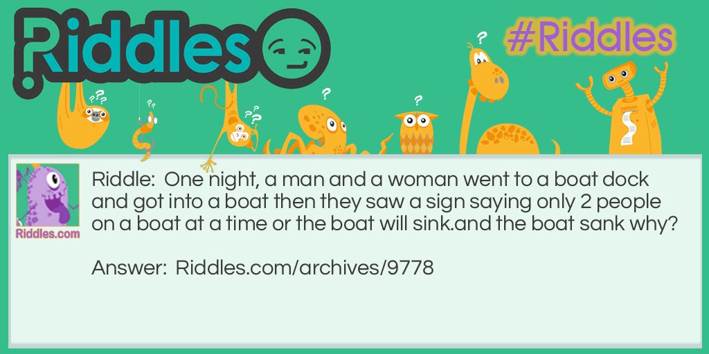 Riddle: One night, a man and a woman went to a boat dock and got into a boat then they saw a sign saying only 2 people on a boat at a time or the boat will sink.and the boat sank
