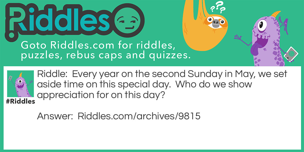 Riddle: Every year on the second Sunday in May, we set aside time on this special day. Who do we show appreciation for on this day?