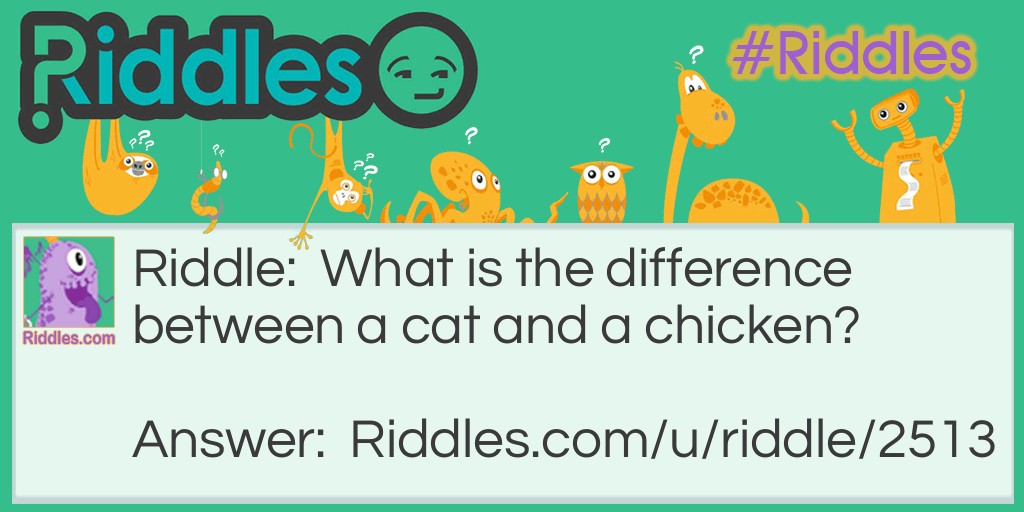 Cat vs chicken Riddle Meme with riddle and answer link.
