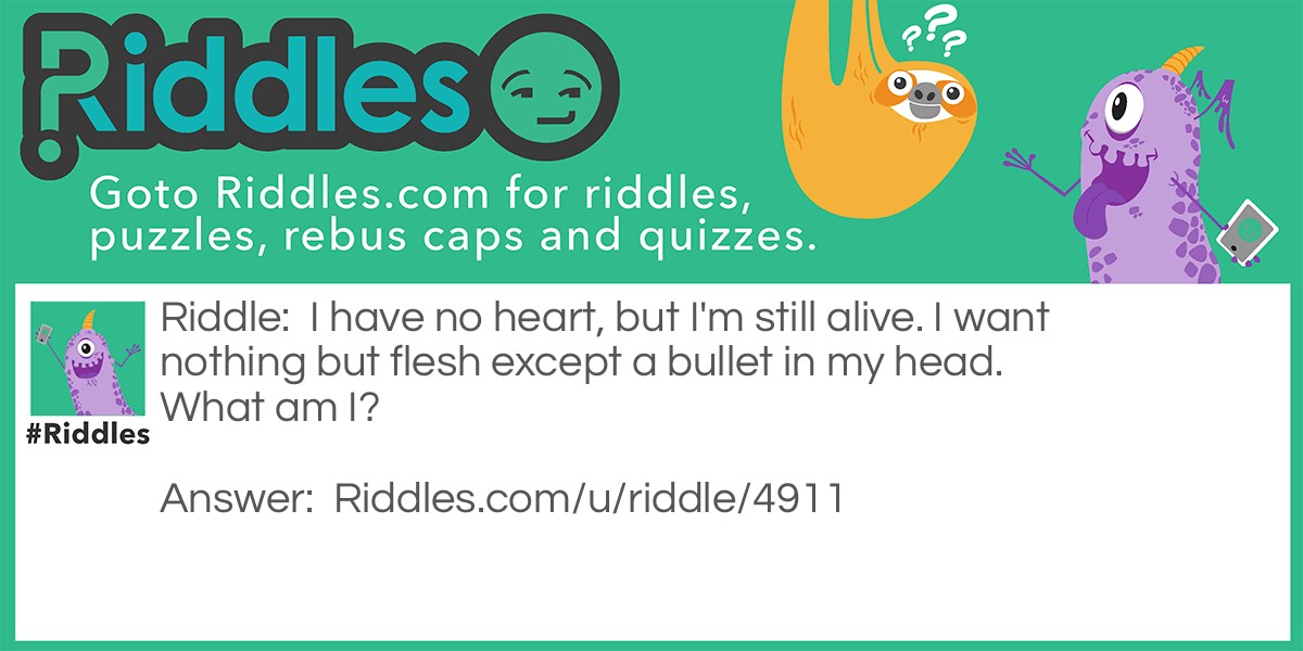 Riddle: I have no heart, but I'm still alive. I want nothing but flesh except a bullet in my head. What am I?