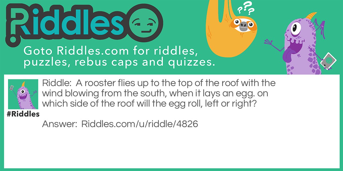 Riddle: A rooster flies up to the top of the roof with the wind blowing from the south, when it lays an egg. on which side of the roof will the egg roll, left or right?
