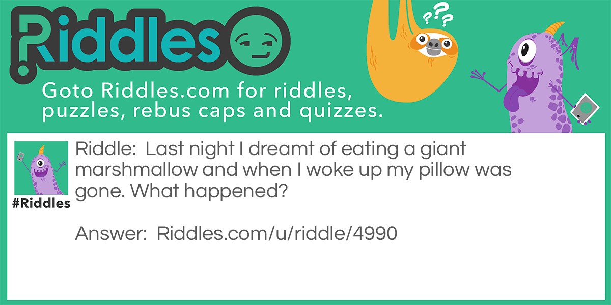 Riddle: Last night I dreamt of eating a giant marshmallow and when I woke up my pillow was gone. What happened?
