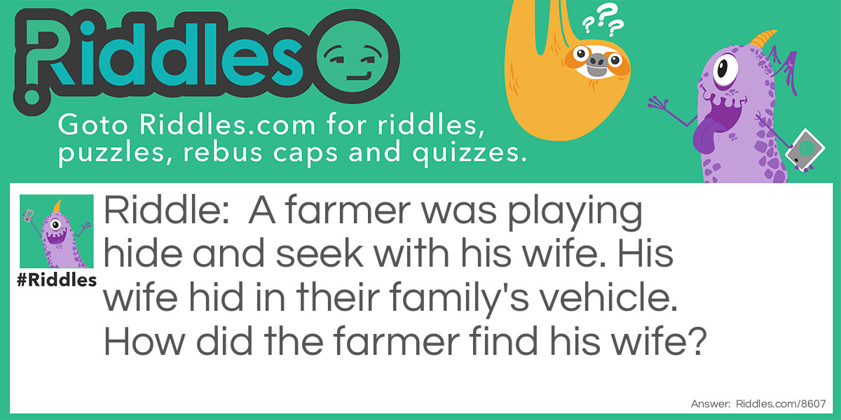 Riddle: A farmer was playing hide and seek with his wife. His wife hid in their family's vehicle. How did the farmer find his wife?