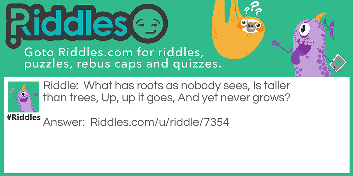 Riddle: What has roots as nobody sees, Is taller than trees, Up, up it goes, And yet never grows?