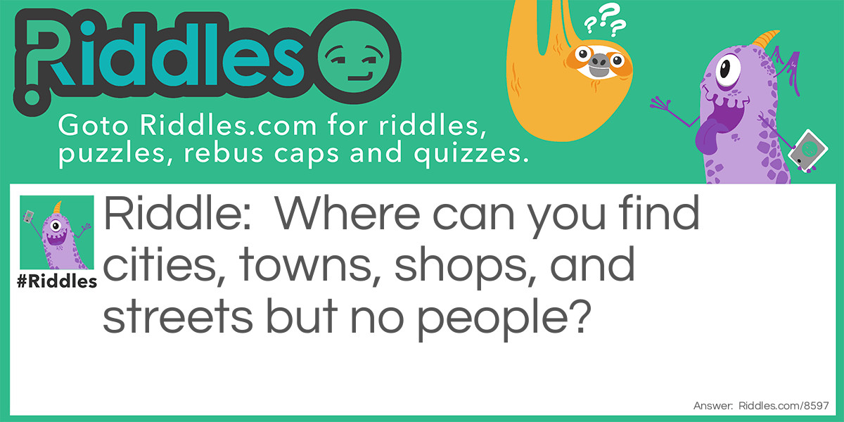 Riddle: Where can you find cities, towns, shops, and streets but no people?