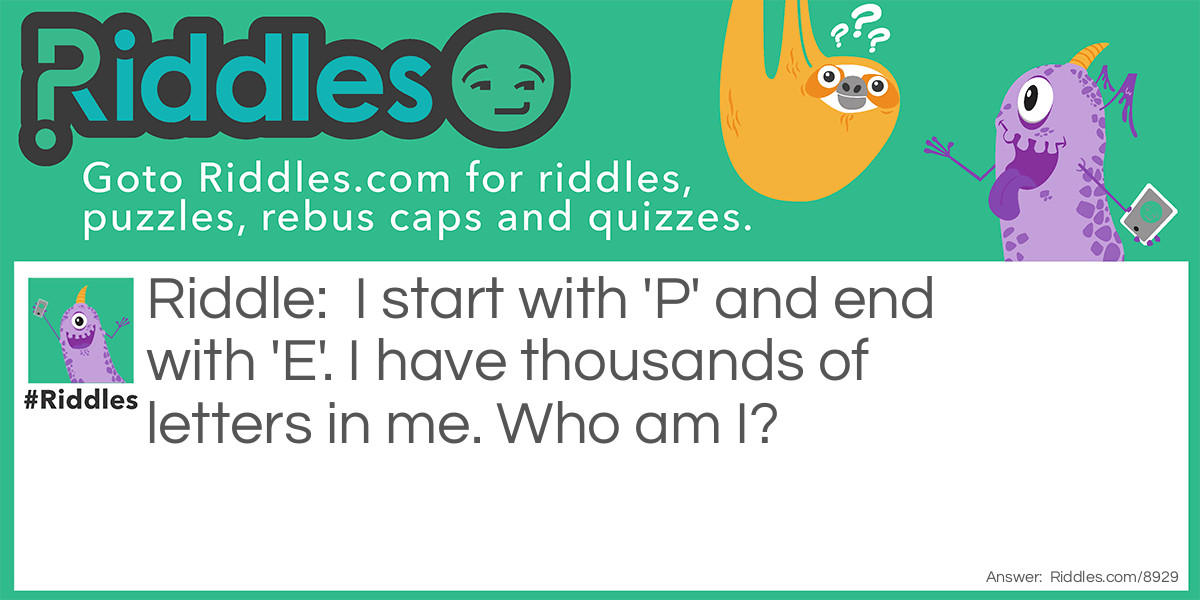 Riddle: I start with 'P' and end with 'E'. I have thousands of letters in me. Who am I?