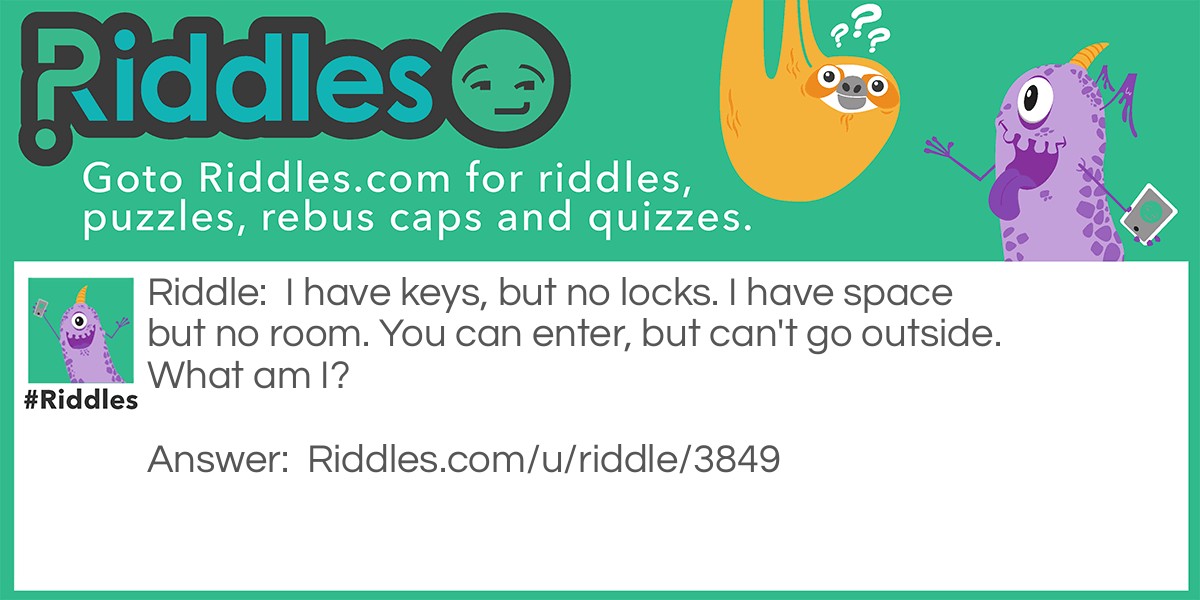 Riddle: I have keys, but no locks. I have space but no room. You can enter, but can't go outside. What am I?