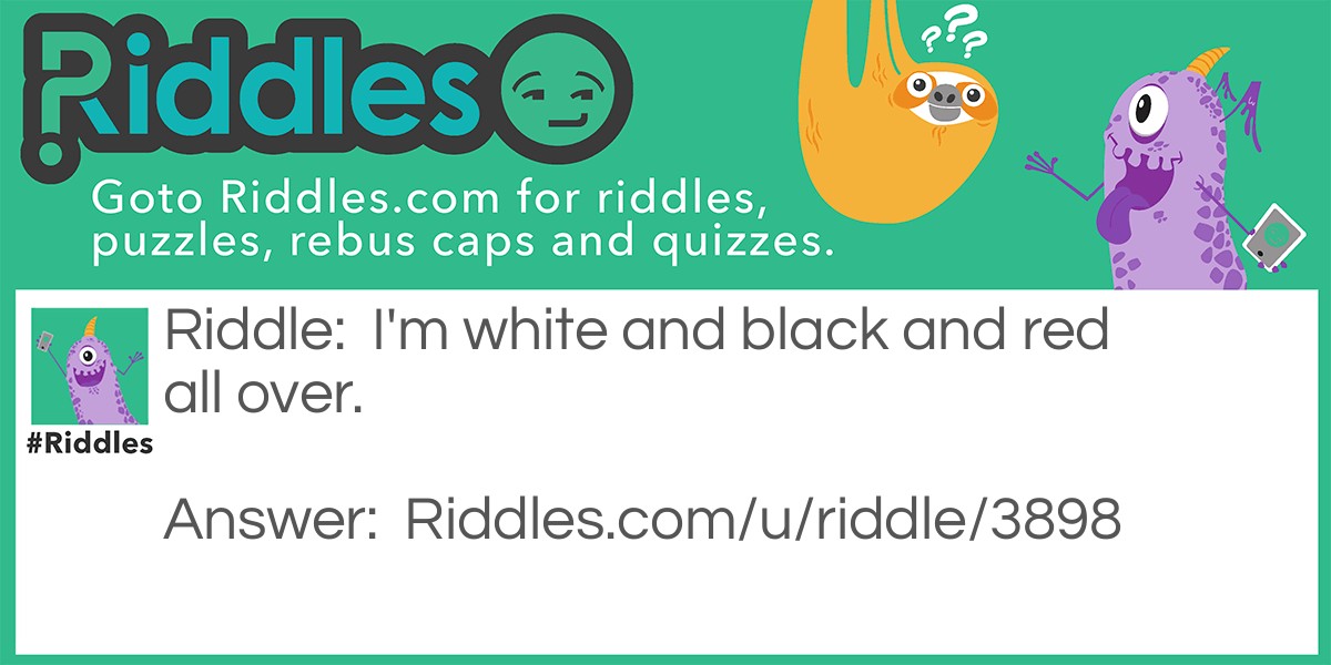 Riddle: I'm white and black and red all over.